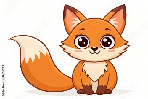Obraz premium Adorable Cartoon Fox Kit Cute Baby Animal Illustration Orange Fur Fluffy Tail...