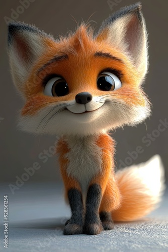 Obraz premium Adorable Cartoon Fox with Big Eyes and a Sweet Smile