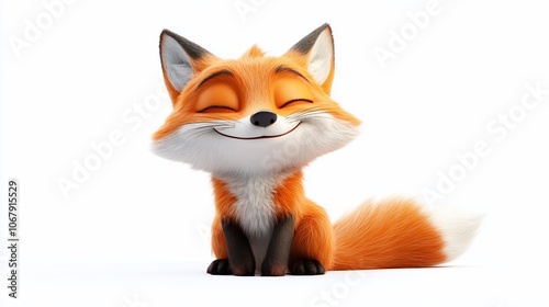 Obraz premium Adorable cartoon fox with closed eyes smiling against a white background.