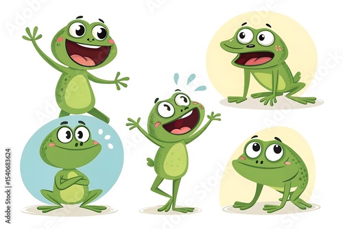 Fototapeta premium Adorable Cartoon Frog Characters Poses and Expressions for Animation