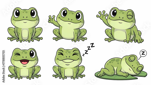 Fototapeta premium Adorable Cartoon Frogs with Cute Expressions