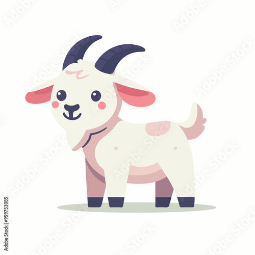 © Dutti Diana, Naklejka premium Adorable Cartoon Goat Illustration in Minimalist Style