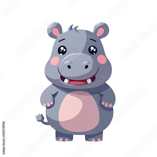 © Narong, Naklejka premium Adorable Cartoon Hippo, Cute Baby Hippo Illustration - Kawaii/Chib.