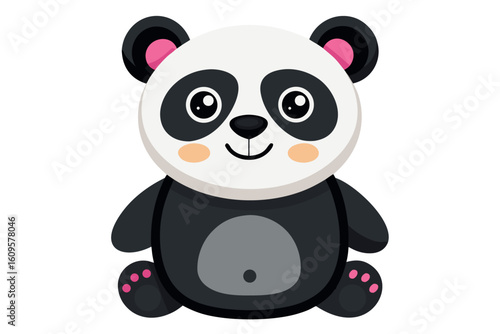 Fototapeta premium Adorable cartoon illustration of a standing panda with big round eyes,...