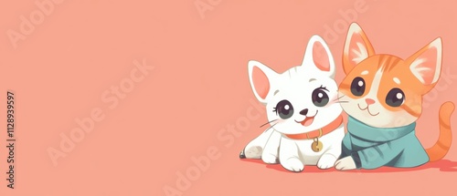 © Fernando, Obraz premium Adorable Cartoon Kittens Cuddling: White and Orange Cat Illustration