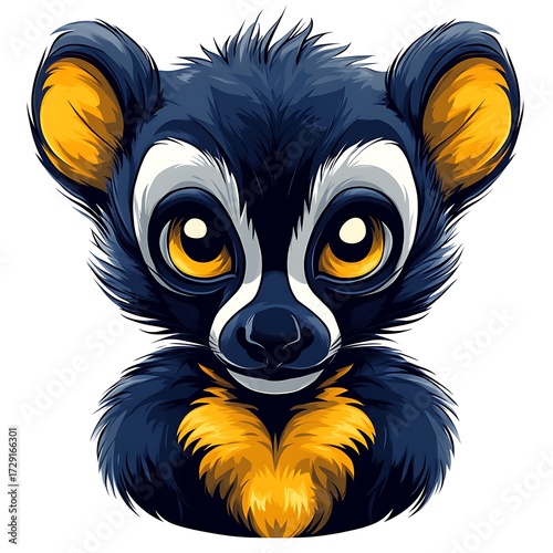 © Shamal, Fototapeta premium Adorable Cartoon Lemur Portrait with Big Eyes on photo White animal face