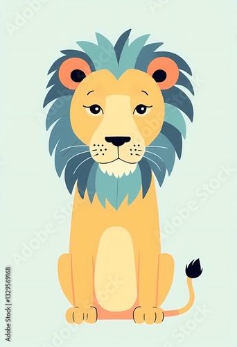 Obraz premium Adorable Cartoon Lion. a charming and minimalist illustration of a sitting...