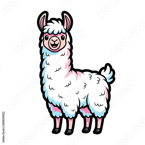 Obraz premium Adorable Cartoon Llama Illustration Isolated.