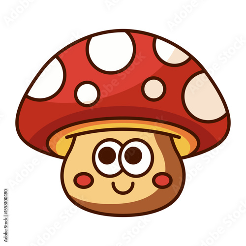 Fototapeta premium Adorable cartoon mushroom with red cap and smiley face isolated on white background