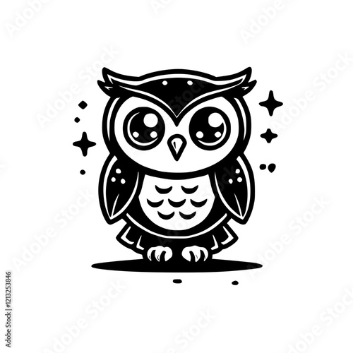 Fototapeta premium Adorable Cartoon Owl: Black and White Vector Illustration. Cute Bird Design,...