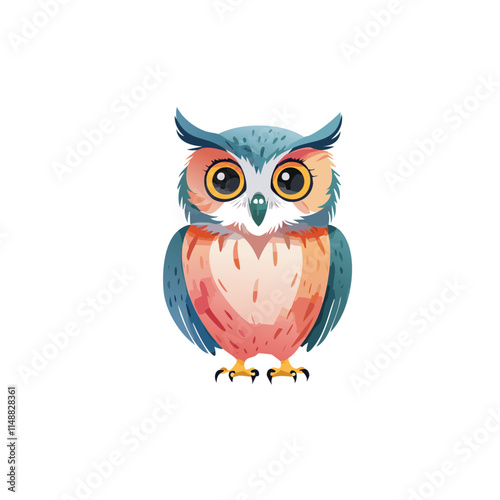 Fototapeta premium Adorable Cartoon Owl Colorful, Large Eyes, Feathery Wings