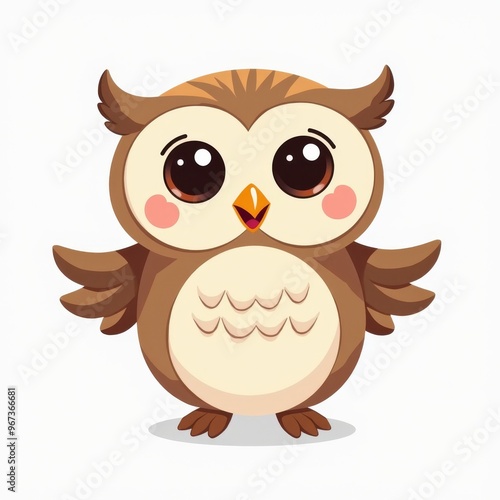 Fototapeta premium Adorable Cartoon Owl Illustration with Big Eyes and Open Wings for Kids'...