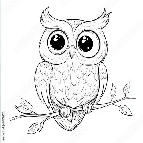 Fototapeta premium Adorable Cartoon Owl Perched on Branch