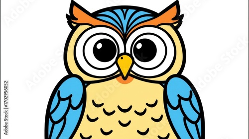 Fototapeta premium Adorable Cartoon Owl with Big Eyes - Perfect for Children's Illustrations