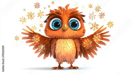 Fototapeta premium Adorable Cartoon Owl with Colorful Feathers and Wide Eyed Expression