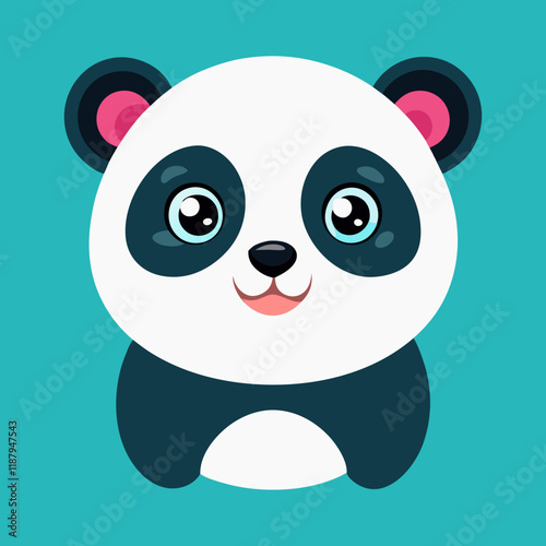 © pixelartis, Fototapeta premium Adorable cartoon panda bear against a teal background.