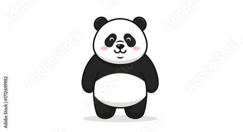 © akun, Fototapeta premium Adorable Cartoon Panda Bear Illustration, Standing Pose, Black and White Fur, Pink Cheeks