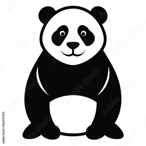 Fototapeta premium Adorable cartoon panda bear sitting black white