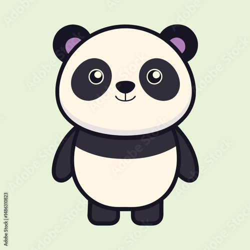 © SharikaShammi, Fototapeta premium Adorable Cartoon Panda Illustration Standing on a Pale Green Background, Cute Animal
