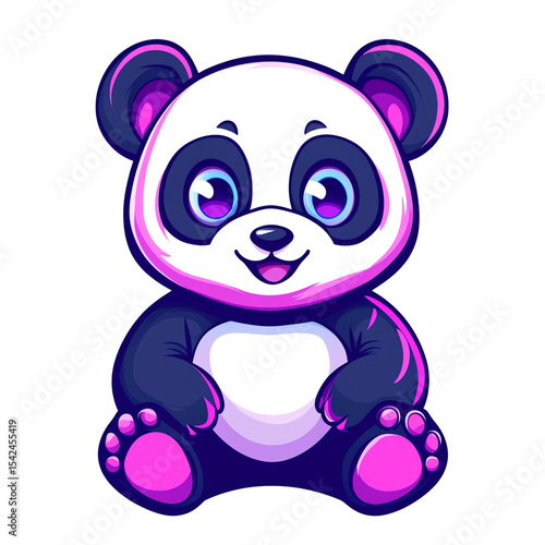Fototapeta premium Adorable Cartoon Panda: Vibrant Purple and Blue Neon Style Illustration