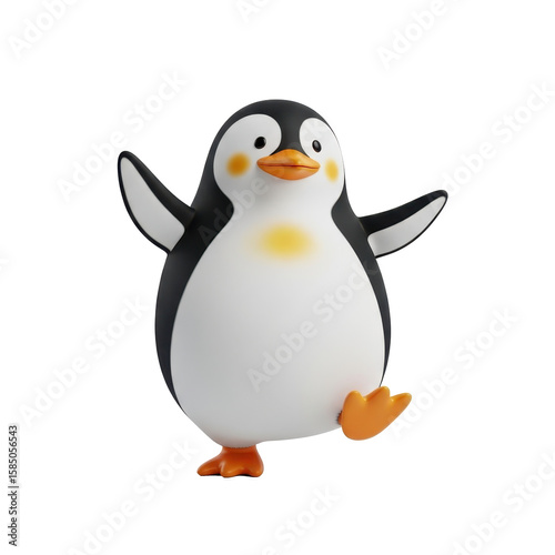Fototapeta premium Adorable Cartoon Penguin Character with Happy Expression, A Charming 3D...