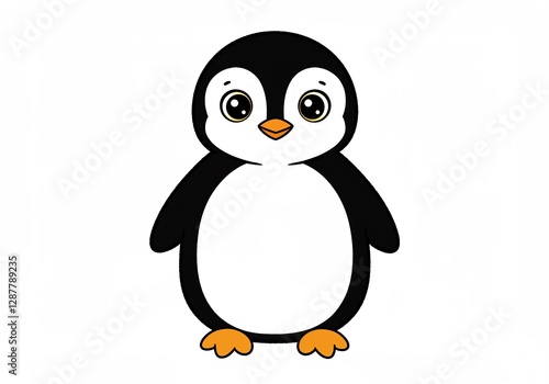 © Nguyen, Fototapeta premium Adorable cartoon penguin cheerfully poses against white background. AI Generated