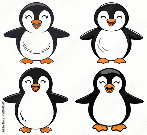 Fototapeta premium Adorable Cartoon Penguin Collection Set