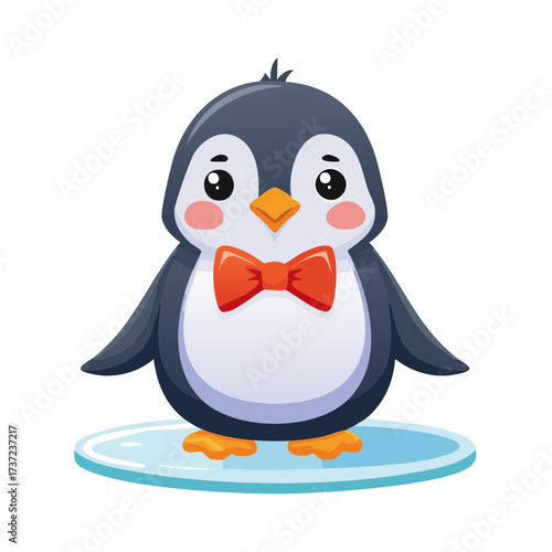 © PhotoHiru, Obraz premium Adorable Cartoon Penguin with Bowtie on Ice