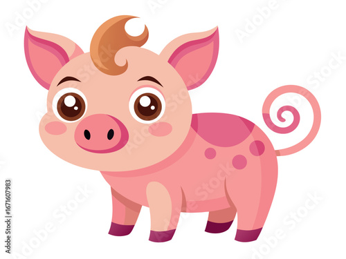 Naklejka premium Adorable cartoon pig with a curly tail