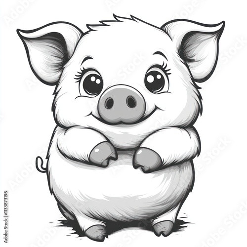 Naklejka premium Adorable cartoon piglet, happy, cute, sitting.