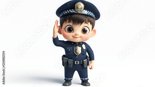 © theerachai, Fototapeta premium Adorable Cartoon Police Officer Boy Saluting 3D Render Child Cute Uniform