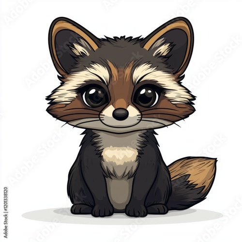 Obraz premium Adorable Cartoon Raccoon Sitting Quietly