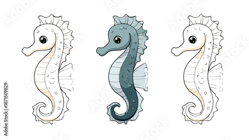 © Farin, Obraz premium Adorable Cartoon Seahorse Vector Illustration Isolated on White Background