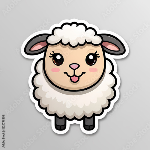© Andesgn, Obraz premium Adorable Cartoon Sheep with a Cheerful Expression for Animal Stickers