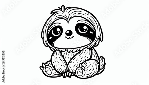 Obraz premium Adorable cartoon sloth illustration with endearing large eyes design