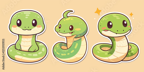 Obraz premium Adorable Cartoon Snakes Vector Icon Illustration stickers