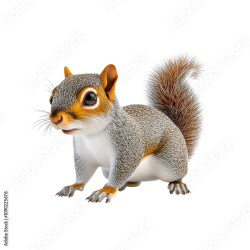 Obraz premium Adorable Cartoon Squirrel Posing on White Background