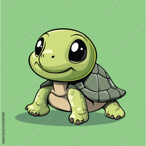 Fototapeta premium Adorable Cartoon Turtle with Big Eyes and a Playful Smiling Expression