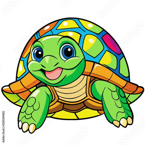 Fototapeta premium Adorable Cartoon Turtle with Brightly Colored Shell and Happy Expression