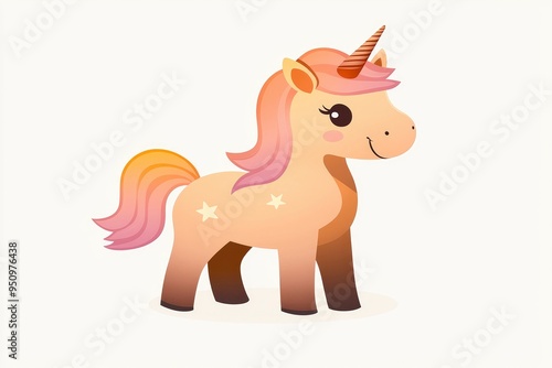 © Tung's companion, Fototapeta premium Adorable Cartoon Unicorn with Pink Mane and Tail
