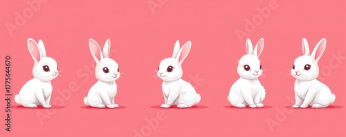 © Georgii, Naklejka premium Adorable cartoon white rabbits arranged on a pink background