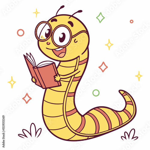 Fototapeta premium Adorable cartoon worm reading a book