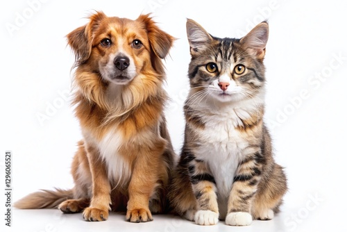 © Four888, Obraz premium Adorable Cat and Dog Posing Together on White Background - Perfect for Pet-Related Designs