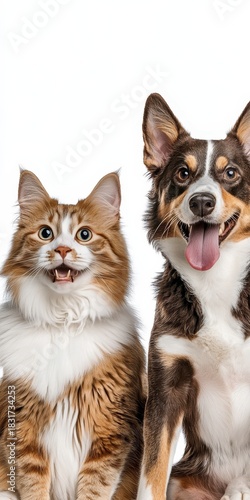 Obraz premium Adorable Cat and Dog Together in Perfect Harmony on a White Background,...