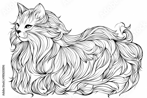 Obraz premium Adorable cat coloring page for children, perfect for creative stock illustrations.