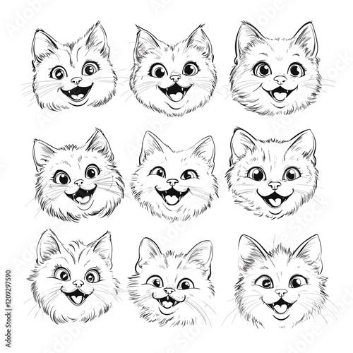 Fototapeta premium Adorable Cat Head Sketches Collection