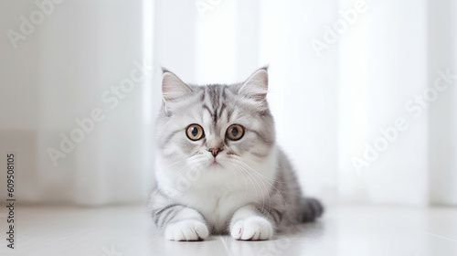 © Moon Project, Fototapeta premium Adorable cat on a white background in different poses. Cat for advertisement. Kitten with white background. Bottomless cat. AI generated image.