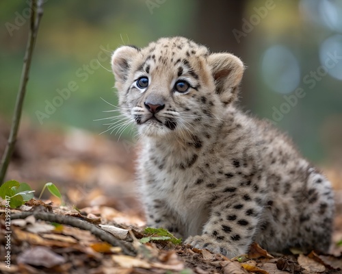 © Niko, Obraz premium Adorable Cheetah Cub Sitting in the Forest