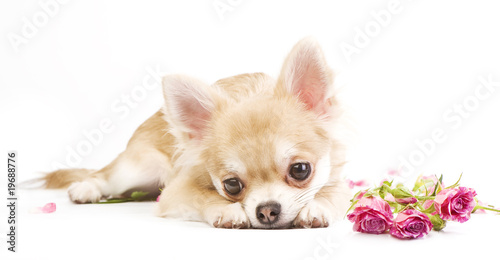Obraz premium adorable chihuahua puppy with roses