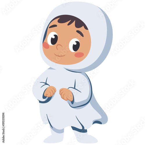 Fototapeta premium Adorable Child Halloween Character in a White Ghost Outfit Isolated Vector...